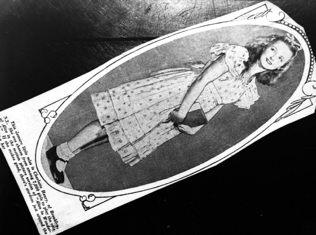 Nous voyons une photographie de l'actrice Charlotte Henry qui a obtenu le rôle d'Alice dans le film «Alice au pays des merveilles» d'après le conte de Lewis Carroll. Cette photographie a été publiée dans une revue