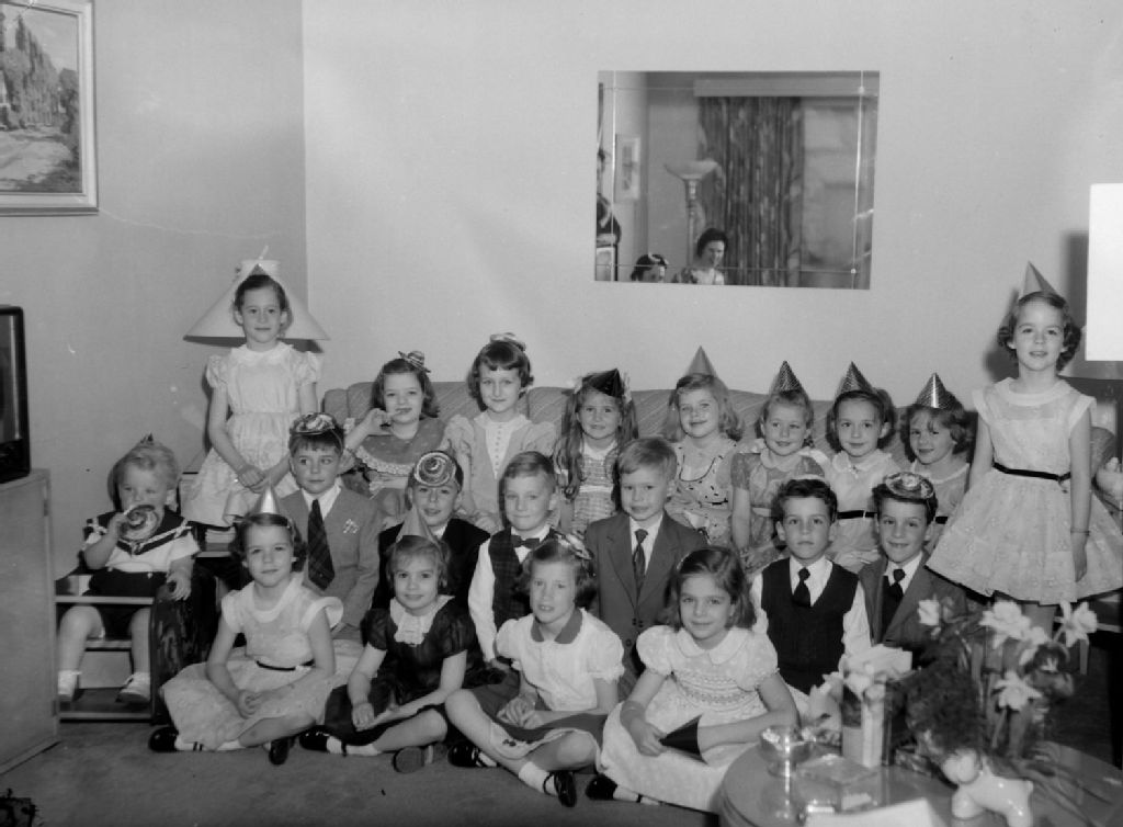Party Group. Children : Marie Harwood's Party, 23 avril 1955, Archives nationales à Montréal, Fonds Conrad Poirier, (06M,P48,S1,P21764), Poirier, Conrad.