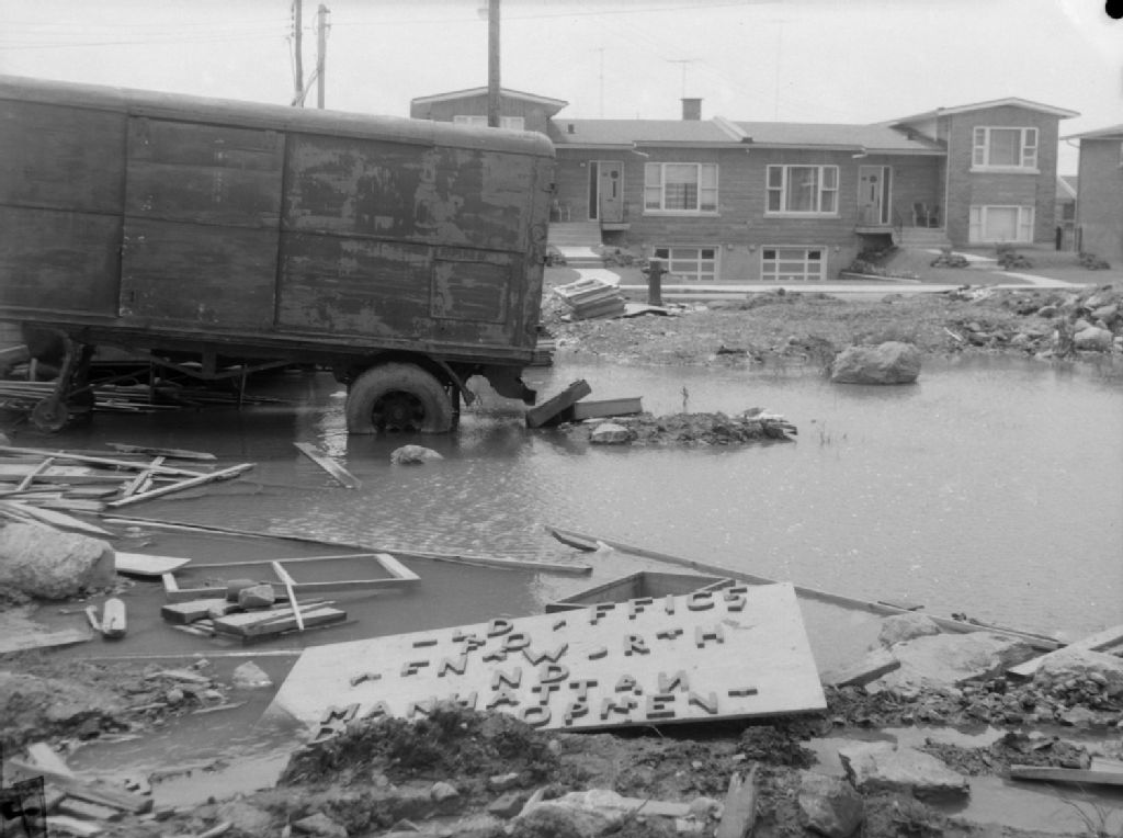 News. Construction in Cote St. Luc, Juillet 1957, Archives nationales à Montréal, Fonds Conrad Poirier, (06M,P48,S1,P22303), Poirier, Conrad.