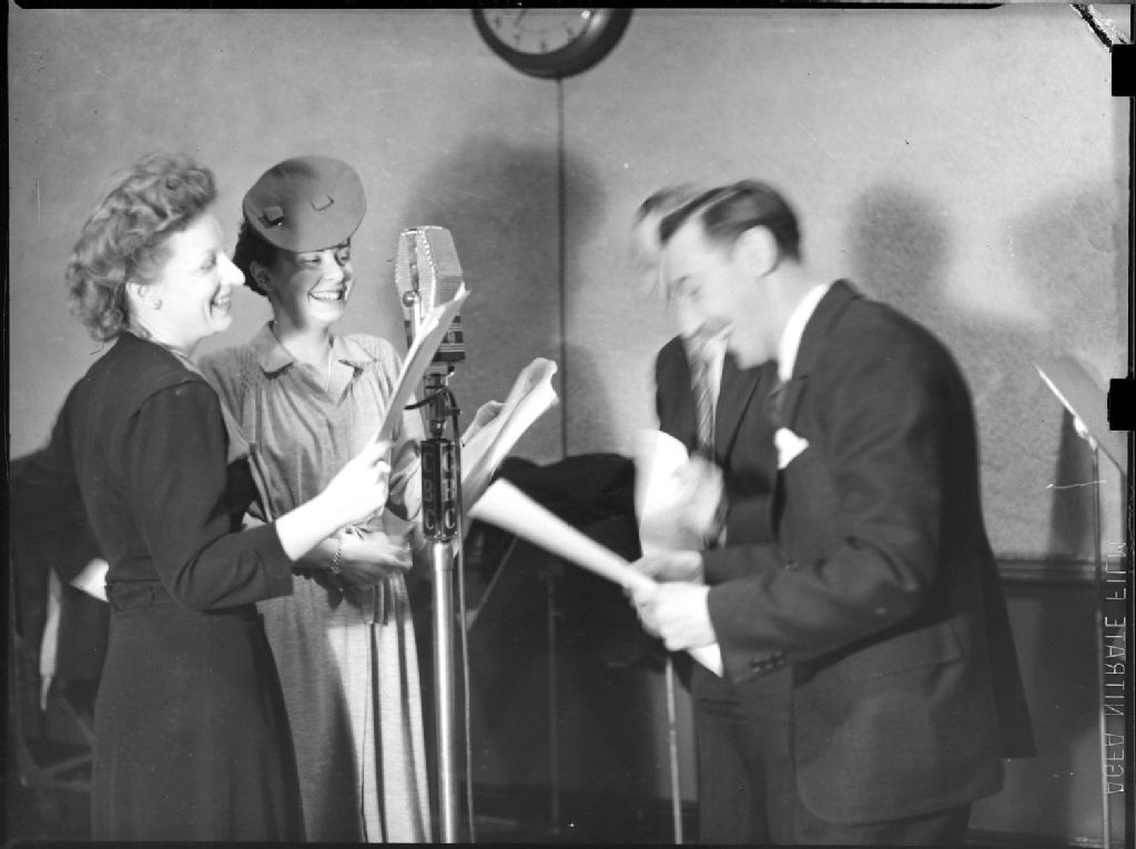 Radio. Pierre Guérin : CBF. Nicole Germain, Andrée Busiliers, 27 janvier 1944, Archives nationales à Montréal, Fonds Conrad Poirier, (06M,P48,S1,P23053), Poirier, Conrad.