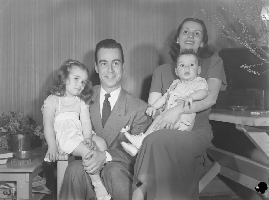 Le comédien François Bertrand et son épouse posant avec leurs deux bambins, Christiane et Pierre, âgés respectivement de 3 ans et de 8 mois