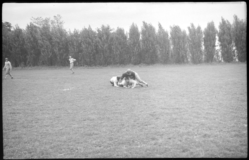 Football. Cubs at Practice : Jim Hamillton, Jim Allan, Poplowsky, 17 septembre 1938, Archives nationales à Montréal, Fonds Conrad Poirier, (06M,P48,S1,P2361), Poirier, Conrad.