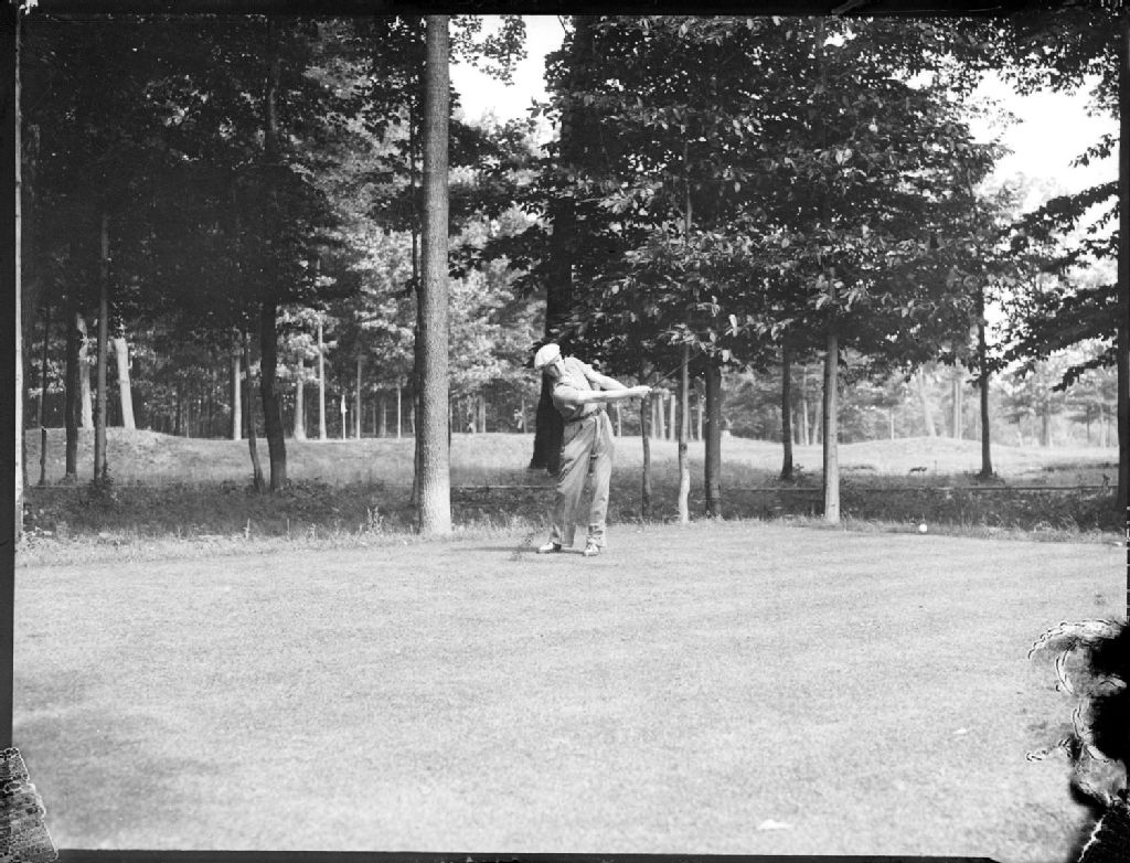 Nous voyons le golfeur Frank Corrignan à l'action, lors du championnat amateur de golf du Québec, se tenant au club de golf d'Islemere à Sainte-Dorothée