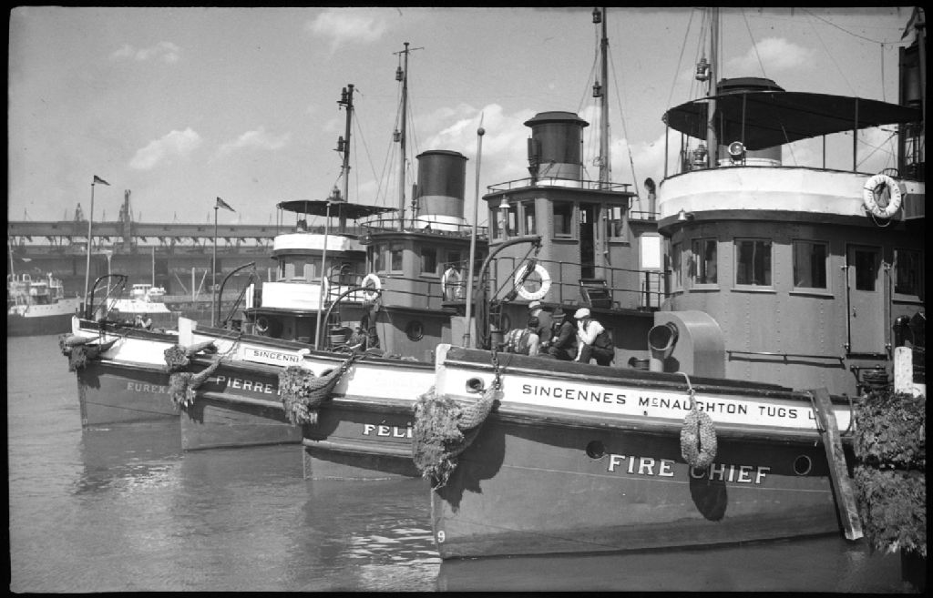 Harbour Scenes. Tugs at Rest, 10 juin 1938, Archives nationales à Montréal, Fonds Conrad Poirier, (06M,P48,S1,P2467), Poirier, Conrad.