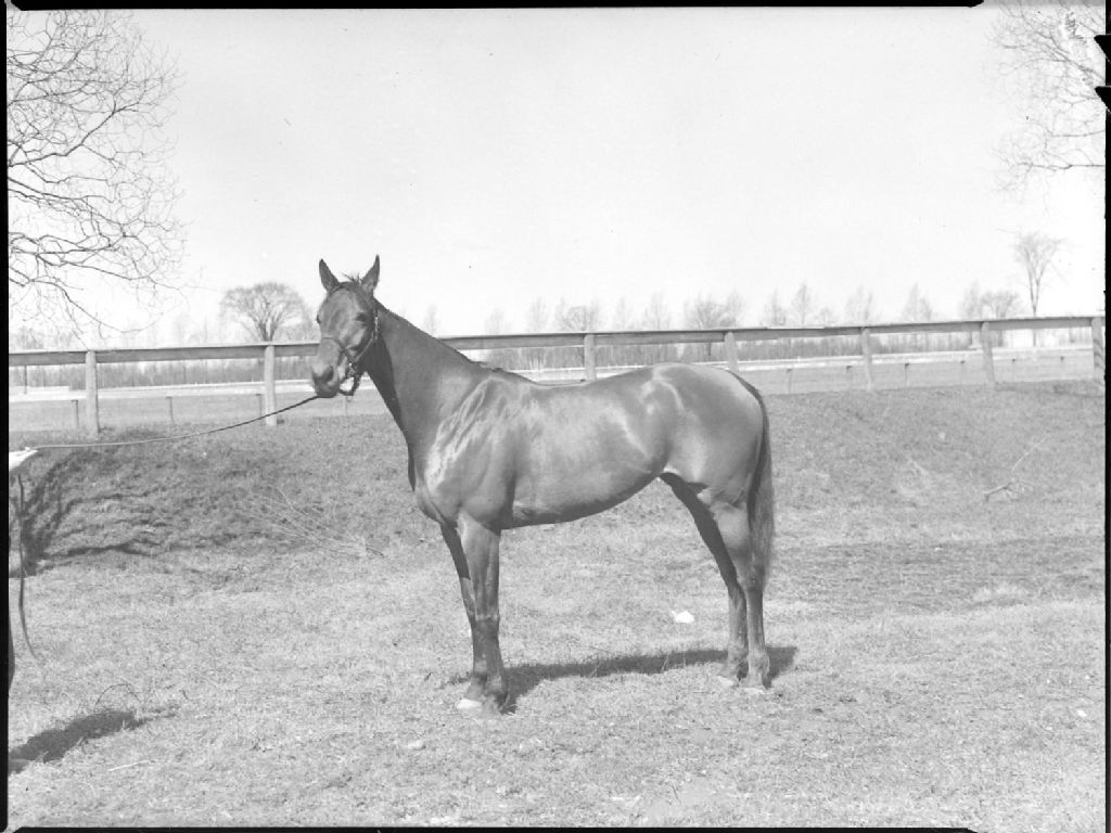 Nous apercevons un cheval de course du nom de «Colored Artist», à l'hippodrome Blue Bonnet, à l'intersection du boulevard Décarie et de la rue Jean-Talon à Montréal