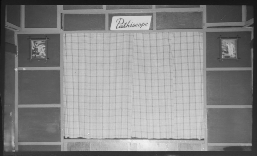 Rideaux. Au-dessus, nous apercevons une affiche «Pathéscope»