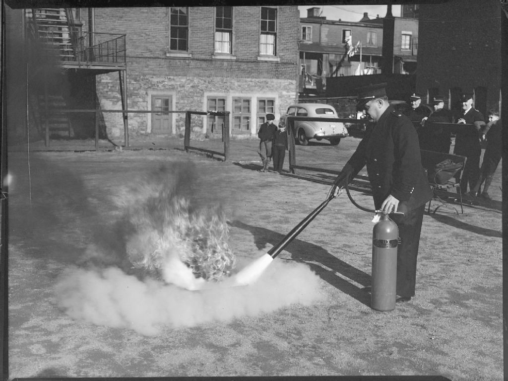 Feature. Firemen's School, 24 octobre 1940, Archives nationales à Montréal, Fonds Conrad Poirier, (06M,P48,S1,P5343), Poirier, Conrad.