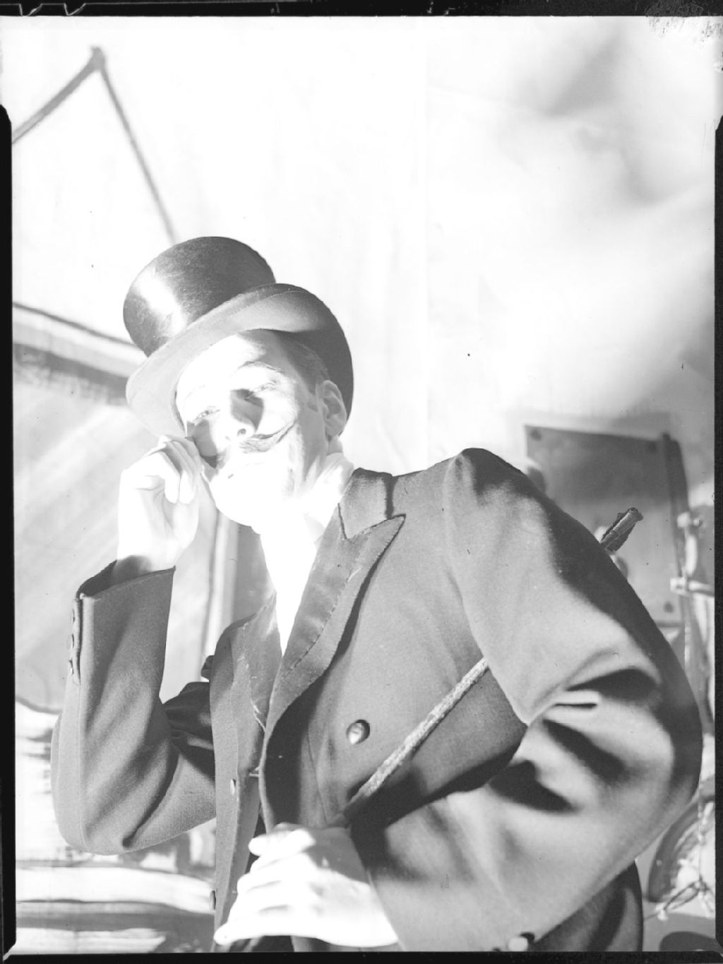 Nous voyons Frank MacIntosh, comédien dans la pièce de théâtre «Atteberrians», coiffé d'un chapeau haut-de-forme