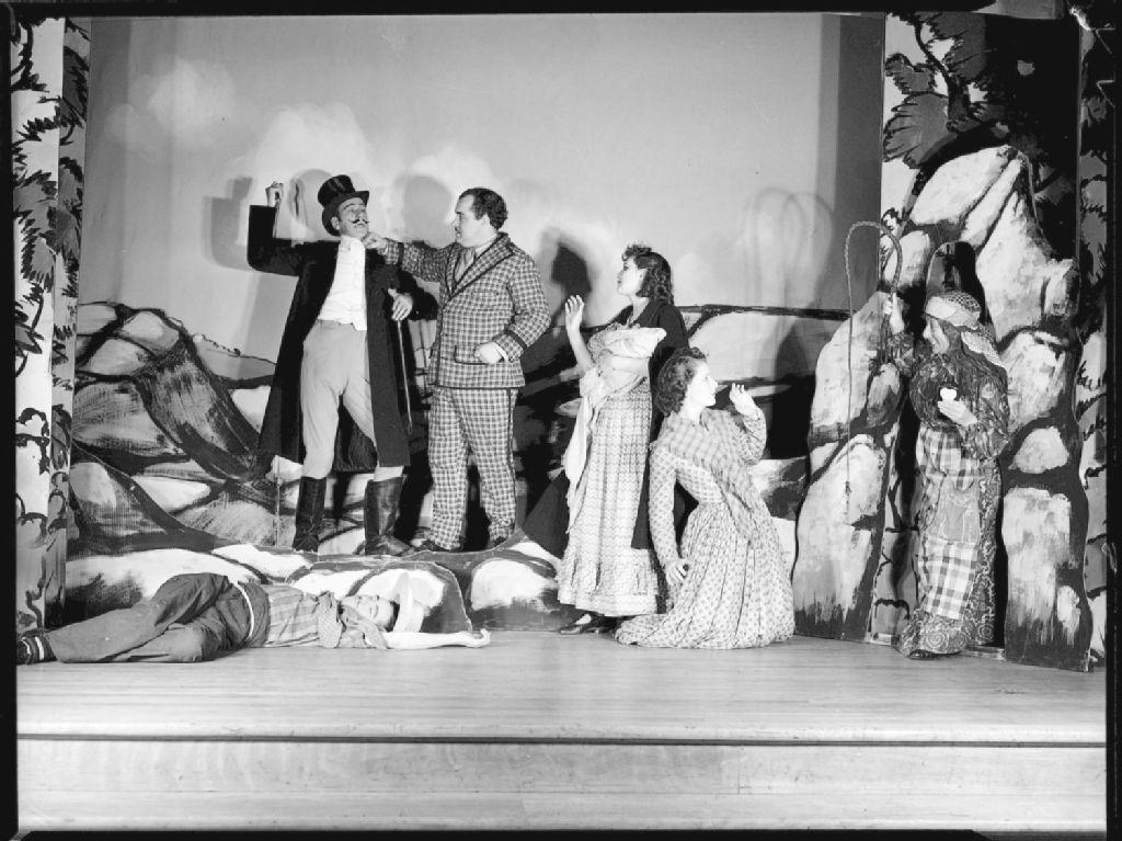 Nous voyons des comédiens jouant une scène dramatique de la pièce de théâtre «Atteberrians»
