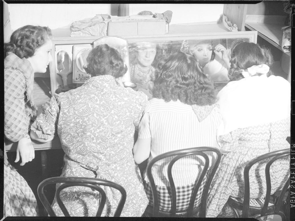 Quatre comédiennes de la pièce de théâtre «Atteberrians» se maquillent avant d'entrer en scène