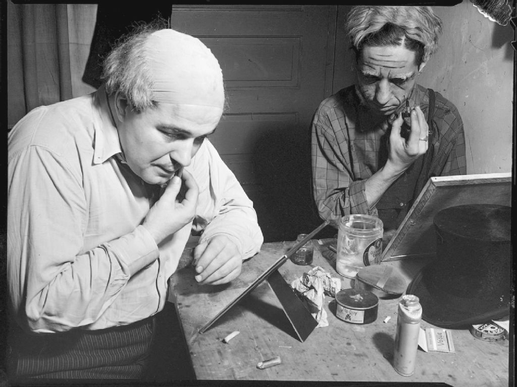 James Coghill et Spencer O'Toole, deux comédiens de la pièce de théâtre «Atteberrians», se maquillent