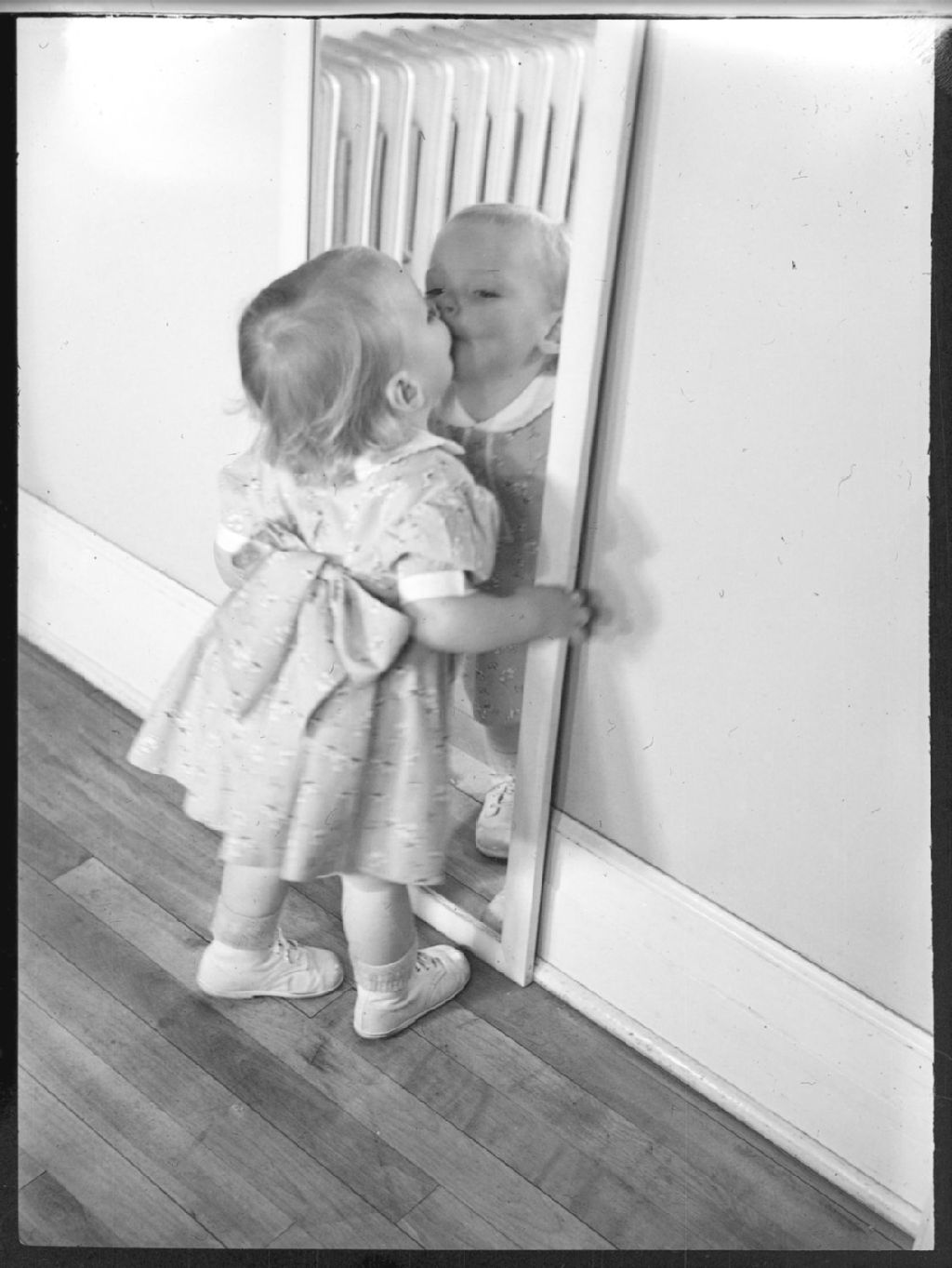 La petite Deanna Luck embrasse son reflet dans le miroir