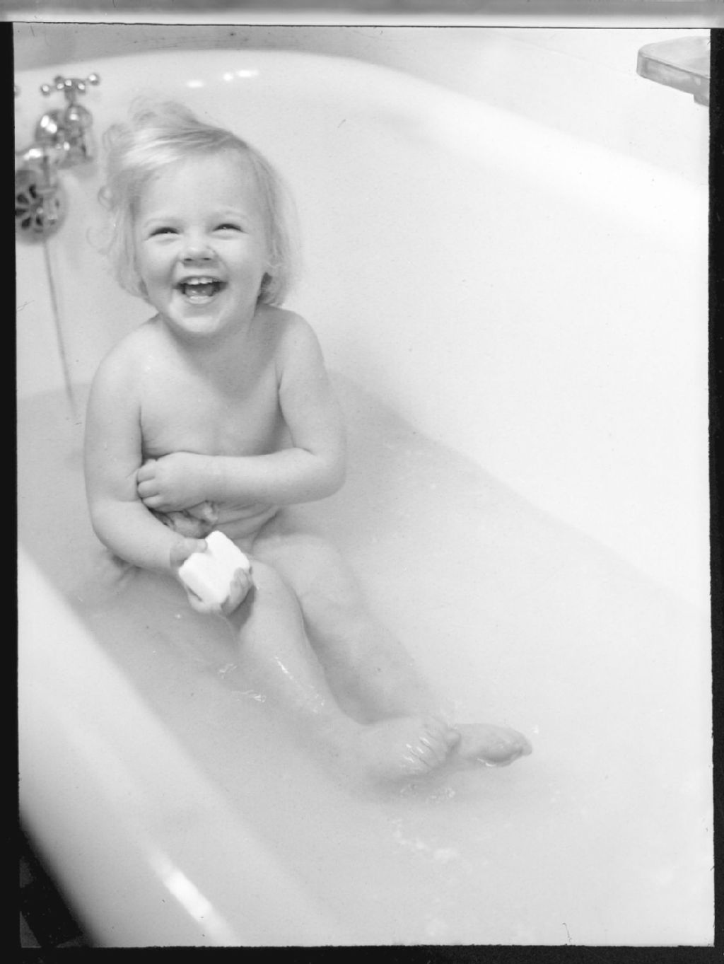 La petite Deanna Luck sourit en prenant son bain