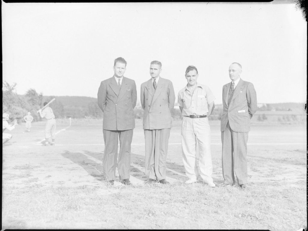 Baseball. New Baseball Diamond in Mount Royal. Officials, 21 juillet 1941, Archives nationales à Montréal, Fonds Conrad Poirier, (06M,P48,S1,P6308), Poirier, Conrad.