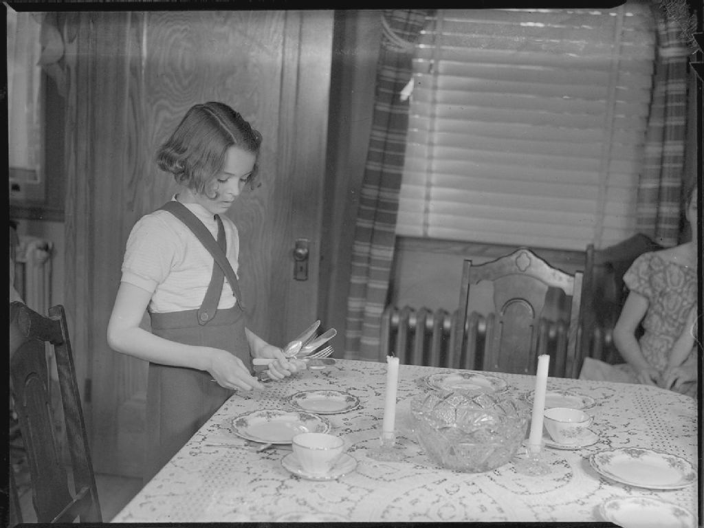 Children Activities. Home tasks. Pauline Luck, 14 mai 1941, Archives nationales à Montréal, Fonds Conrad Poirier, (06M,P48,S1,P6380), Poirier, Conrad.