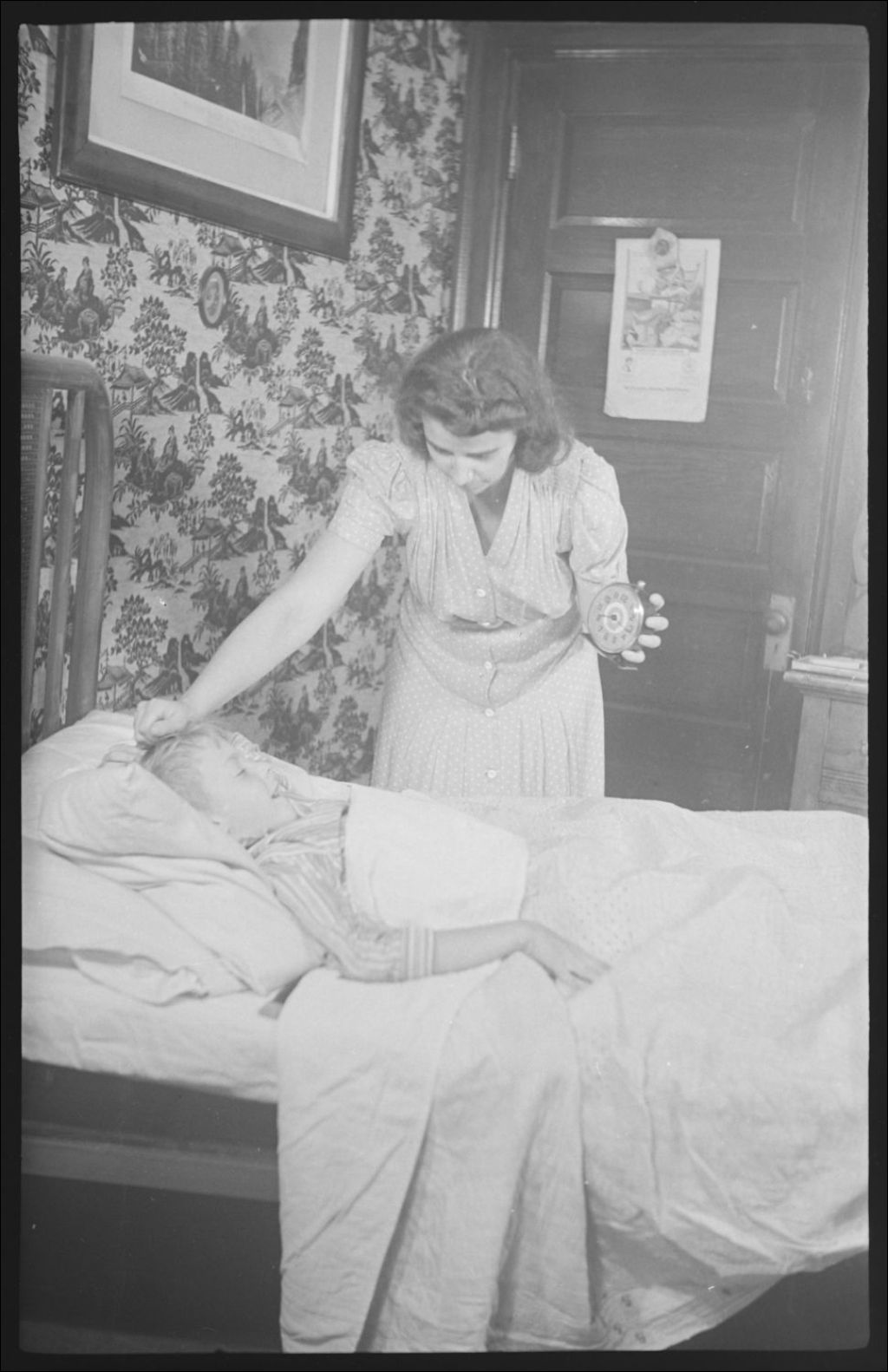 Lilian Poirier réveille Jerry Greenwood qui doit aller à l'école. Elle lui montre l'heure sur le réveille-matin