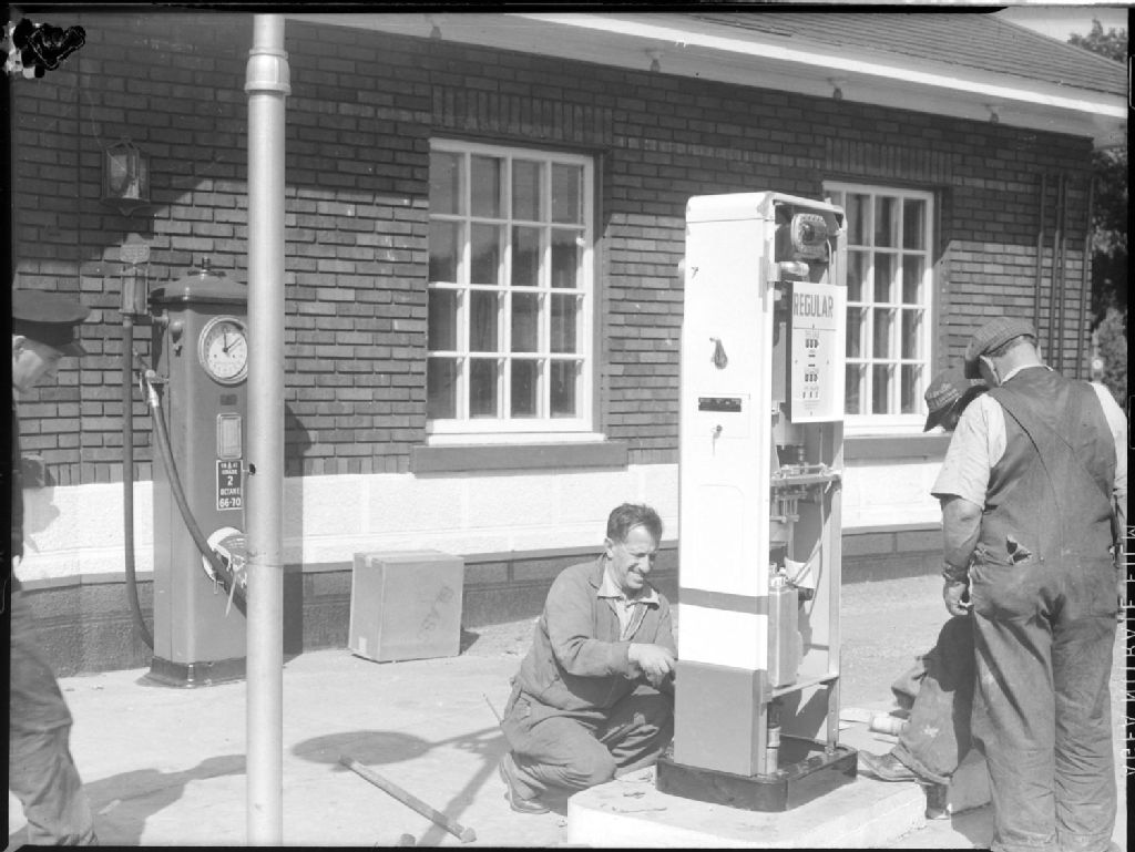 Commercial. New pumps at Darou Service Station, 27 août 1941, Archives nationales à Montréal, Fonds Conrad Poirier, (06M,P48,S1,P6569), Poirier, Conrad.