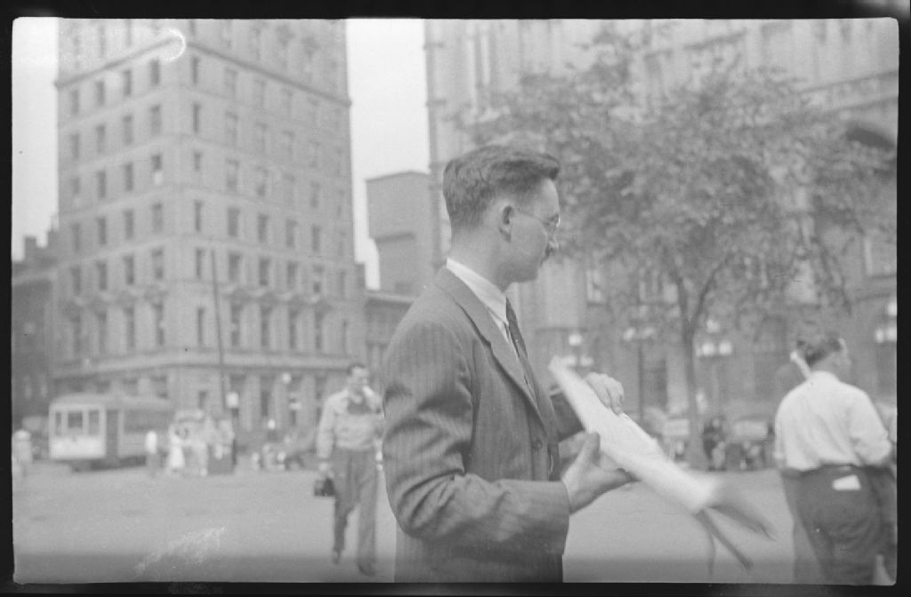 Feature. Rush Hour. Place D'Armes, 18 juin 1941, Archives nationales à Montréal, Fonds Conrad Poirier, (06M,P48,S1,P6855), Poirier, Conrad.
