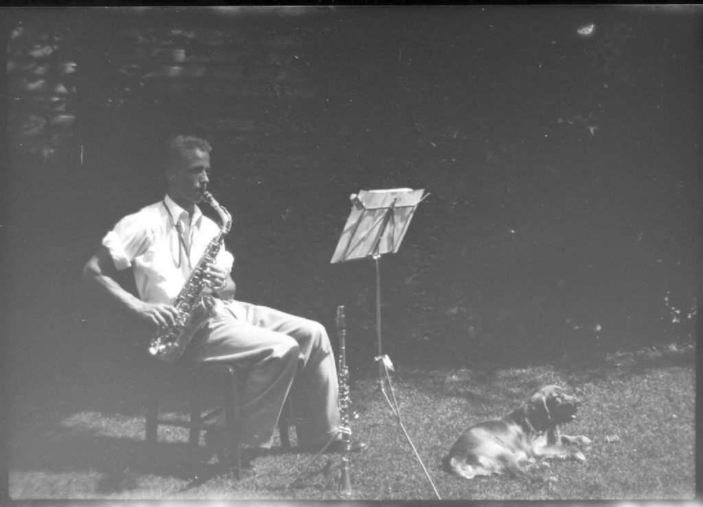 Friends and Family and Trips. Huntley Bourne & his sax, 17 août 1936, Archives nationales à Montréal, Fonds Conrad Poirier, (06M,P48,S1,P735), Poirier, Conrad.