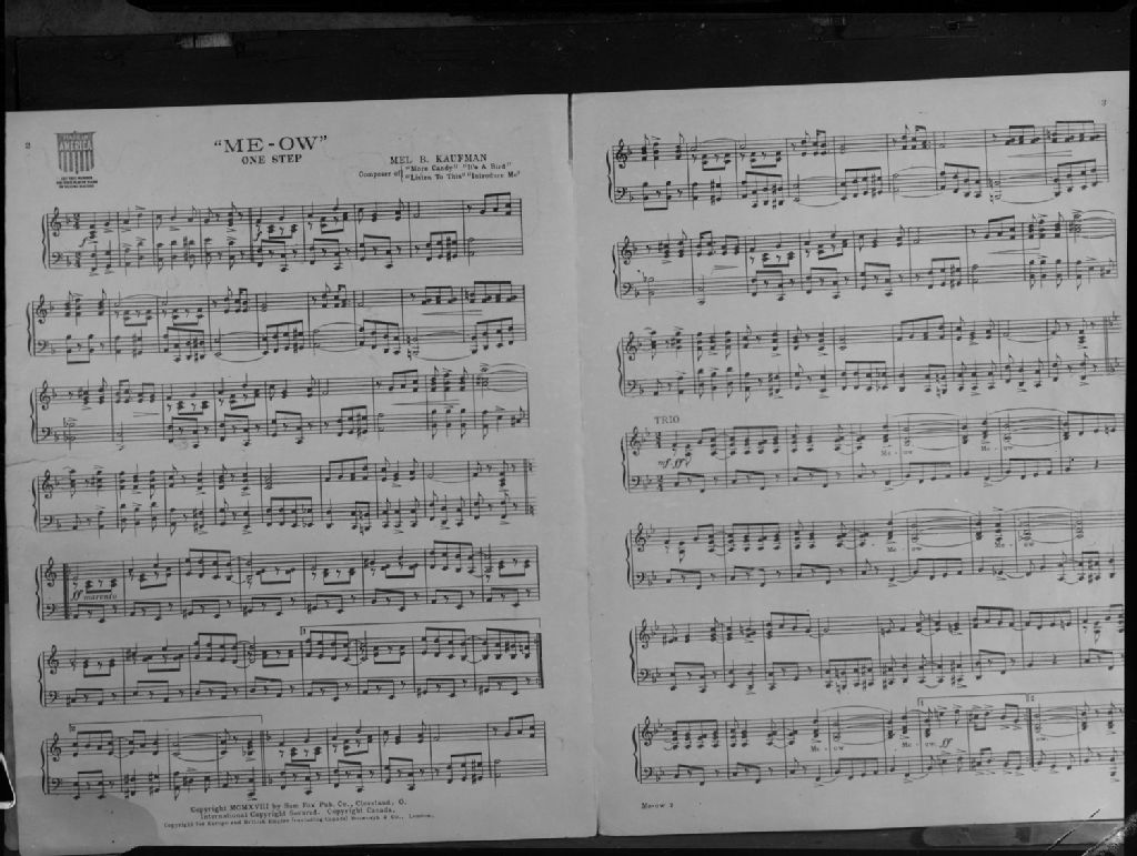 Nous voyons la partition de «Me-Ow» de Mel B. Kaufman