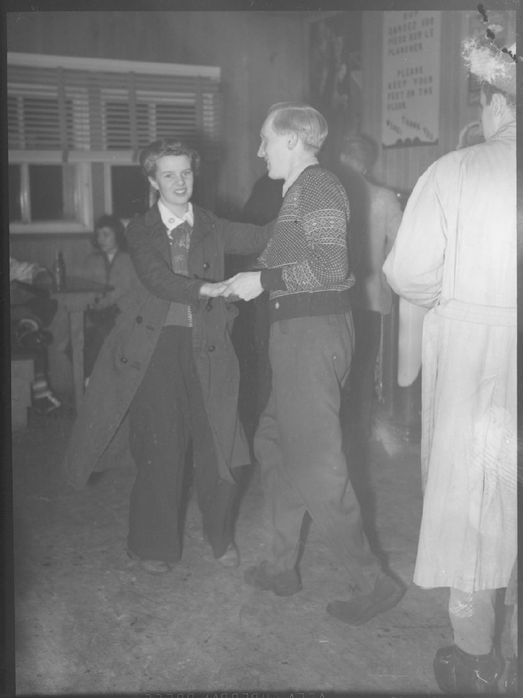 Skiing. Hells Belles at St-Sauveur. Stuart Conway, Kay Wolthausen, 24 janvier 1942, Archives nationales à Montréal, Fonds Conrad Poirier, (06M,P48,S1,P8184), Poirier, Conrad.