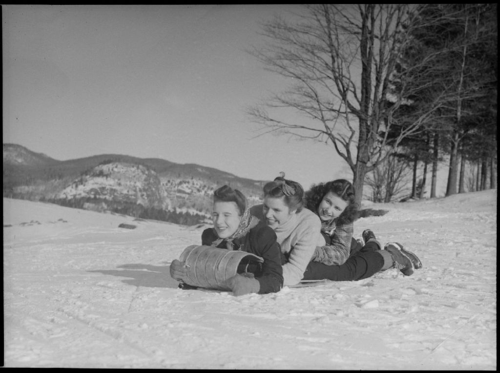Skiing. Hell's Belles at St-Sauveur, 24 janvier 1942, Archives nationales à Montréal, Fonds Conrad Poirier, (06M,P48,S1,P8221), Poirier, Conrad.
