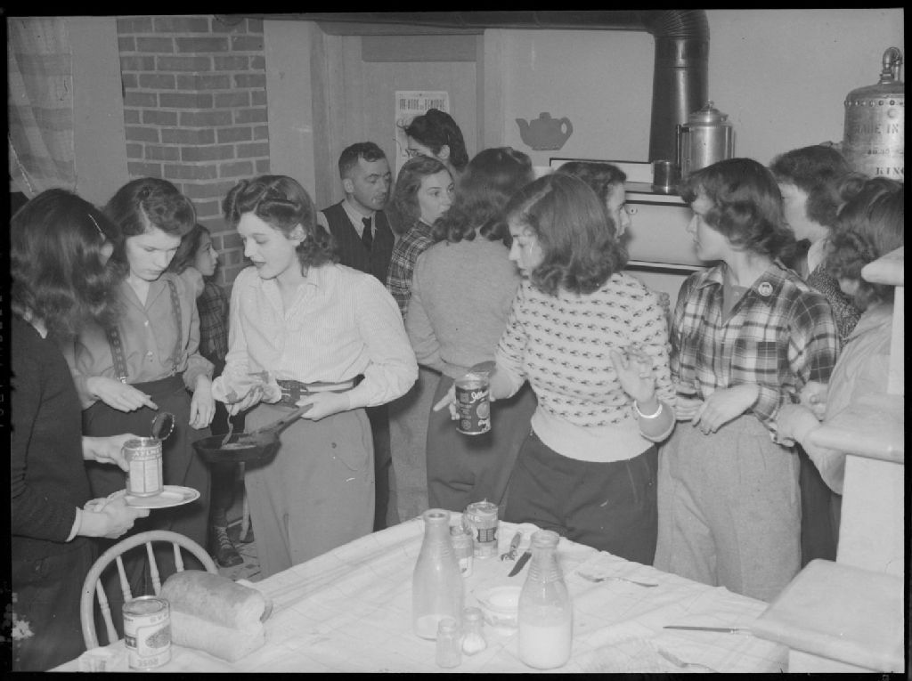 Des jeunes femmes des «Hell's Belles» se préparent à manger, surtout des conserves, dans un chalet à Saint-Sauveur dans les Laurentides