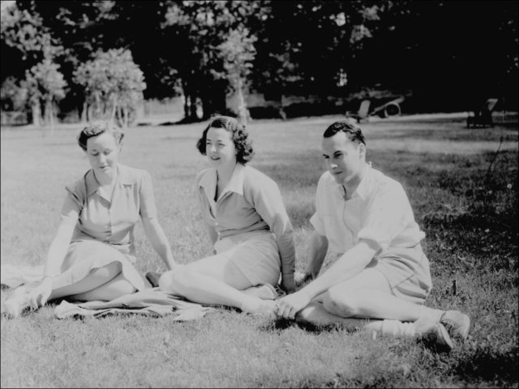 Madame et monsieur H. R. Horner et madame G. S. Hanna sont assis près du «Royal St Lawrence Yacht Club» à Pointe-Claire
