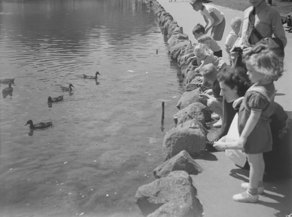 Pierrette Lambert observe les canards du lac du parc Lafontaine à Montréal. Des promeneurs leur lancent des graines