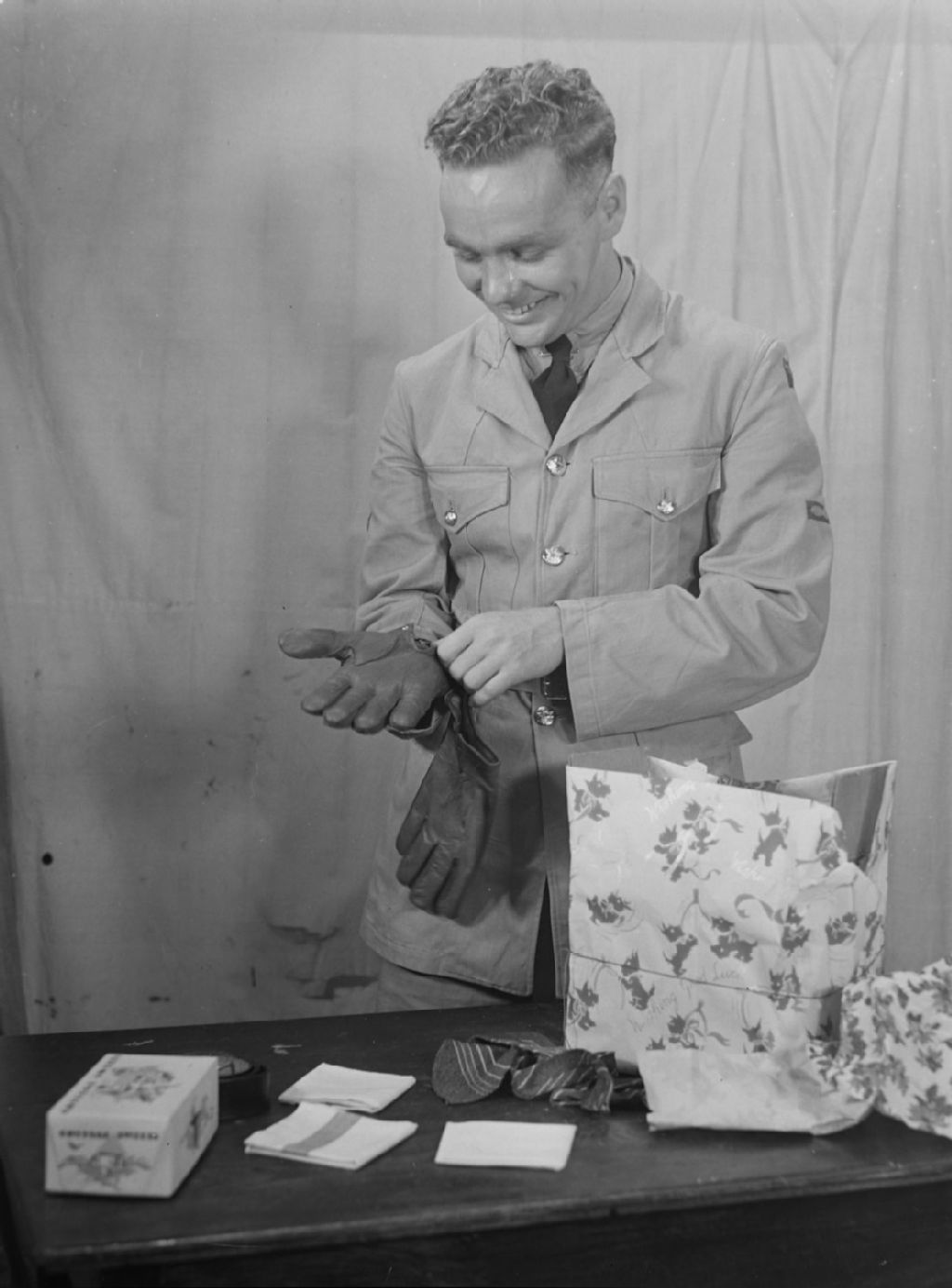 Christmas. Opening a Christmas Parcel, 21 août 1943, Archives nationales à Montréal, Fonds Conrad Poirier, (06M,P48,S1,P8751), Poirier, Conrad.