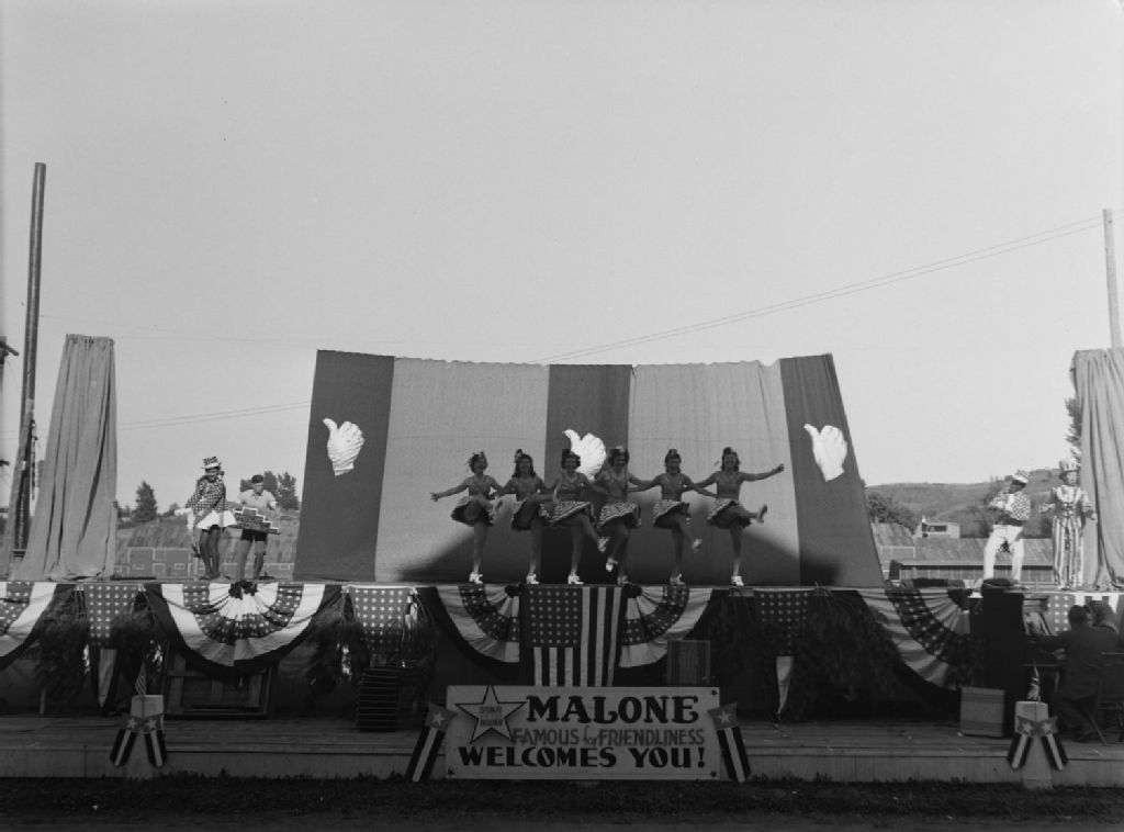 Des girls dansent le french cancan pendant une représentation de la revue musicale «Thumbs Up» à Malone dans l'État de New York (États-Unis)