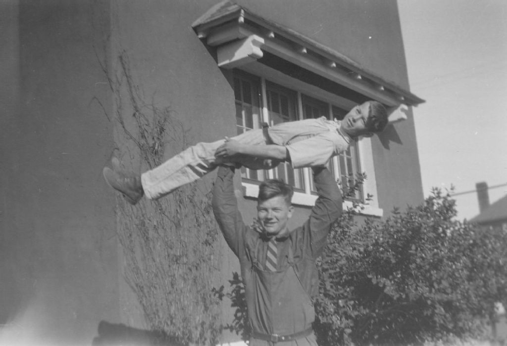 Unclaimed Negative. Holding Boy in Air, 9 octobre 1943, Archives nationales à Montréal, Fonds Conrad Poirier, (06M,P48,S1,P9781), Poirier, Conrad.
