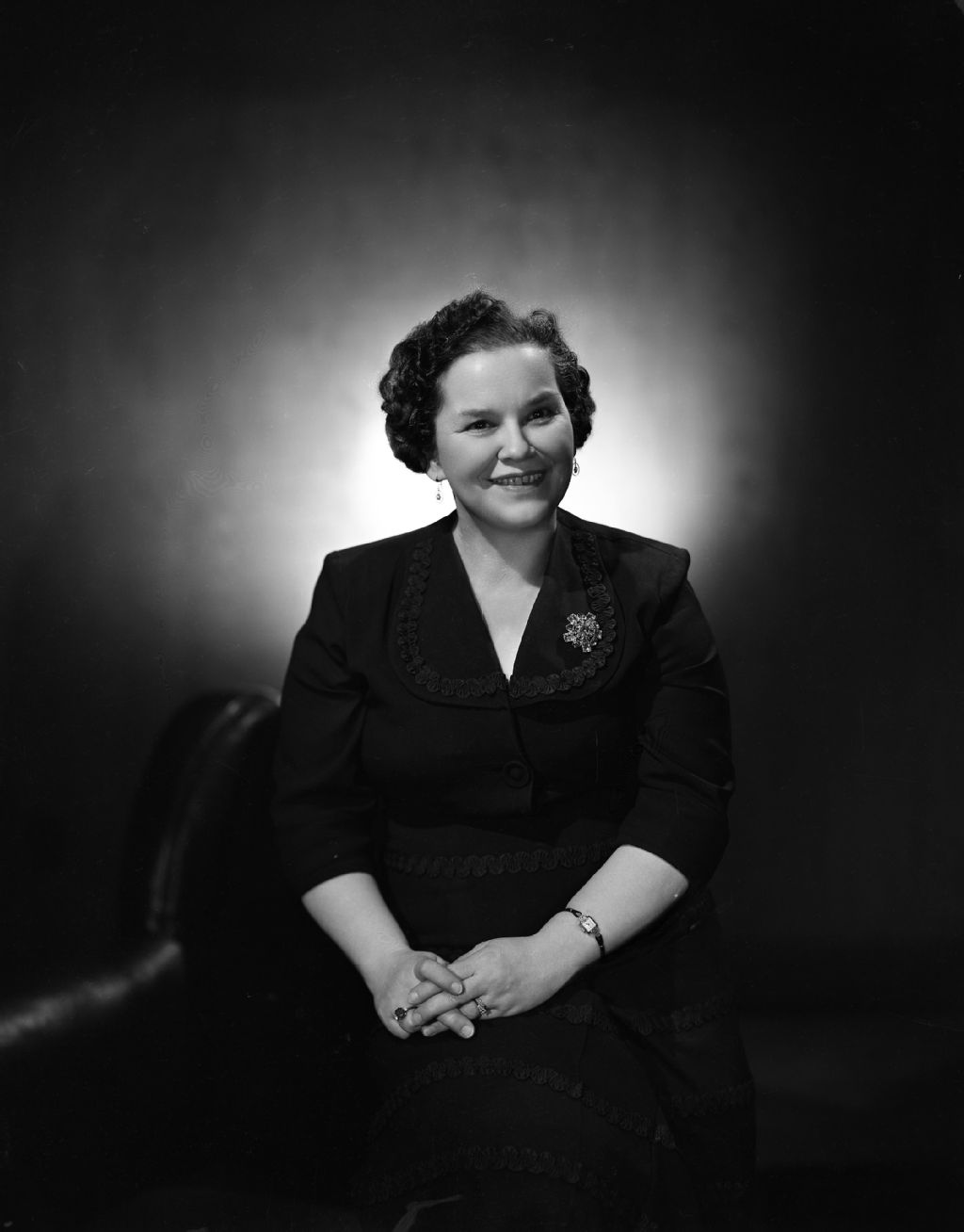 Mme Gérard Desjardins, 21 février 1955, Archives nationales à Montréal, Fonds Gabriel Desmarais (Gaby), (06M,P795,S1,D3280), Photo Gaby (Gabriel Desmarais).