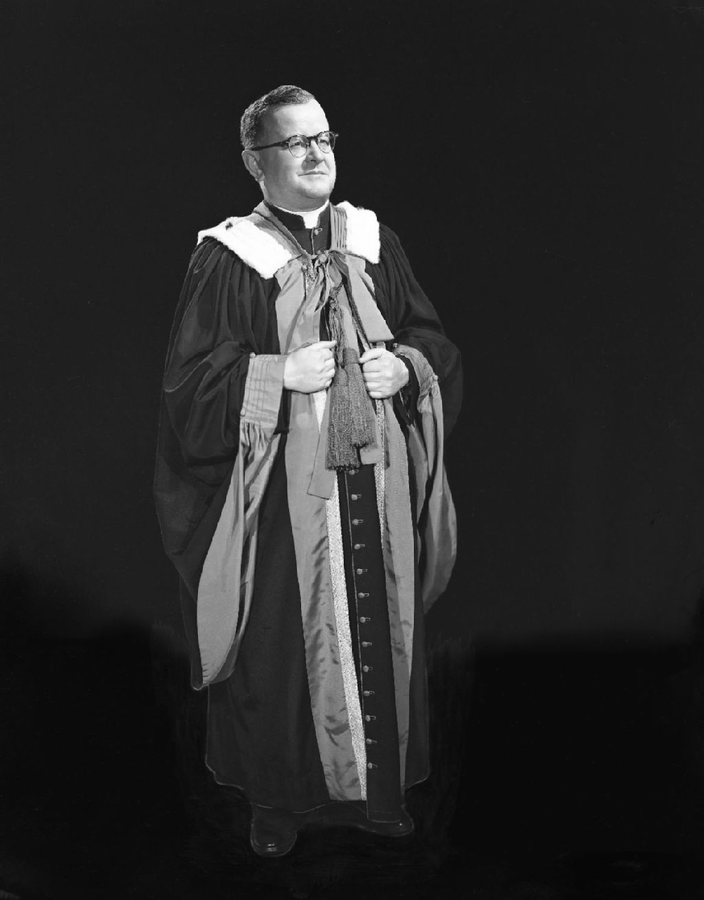 Monseigneur Parent, recteur de l'Université Laval, Avril 1955, Archives nationales à Montréal, Fonds Gabriel Desmarais (Gaby), (06M,P795,S1,D3388), Photo Gaby (Gabriel Desmarais).