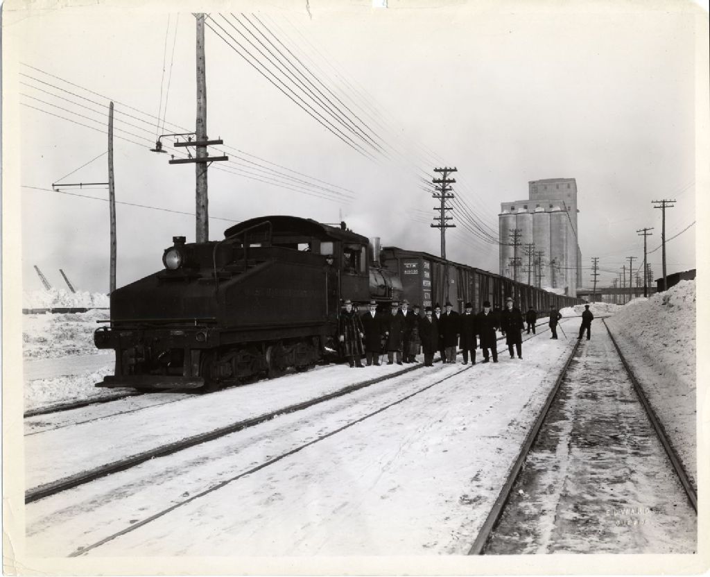 Locomotive de la Quebec Harbour Commission No.4 et wagons de la Grand Trunk Western, [Vers 1925], Archives nationales à Québec, Fonds L'Action catholique, (03Q,P428,S3,SS1,D10,P4), Edwards.