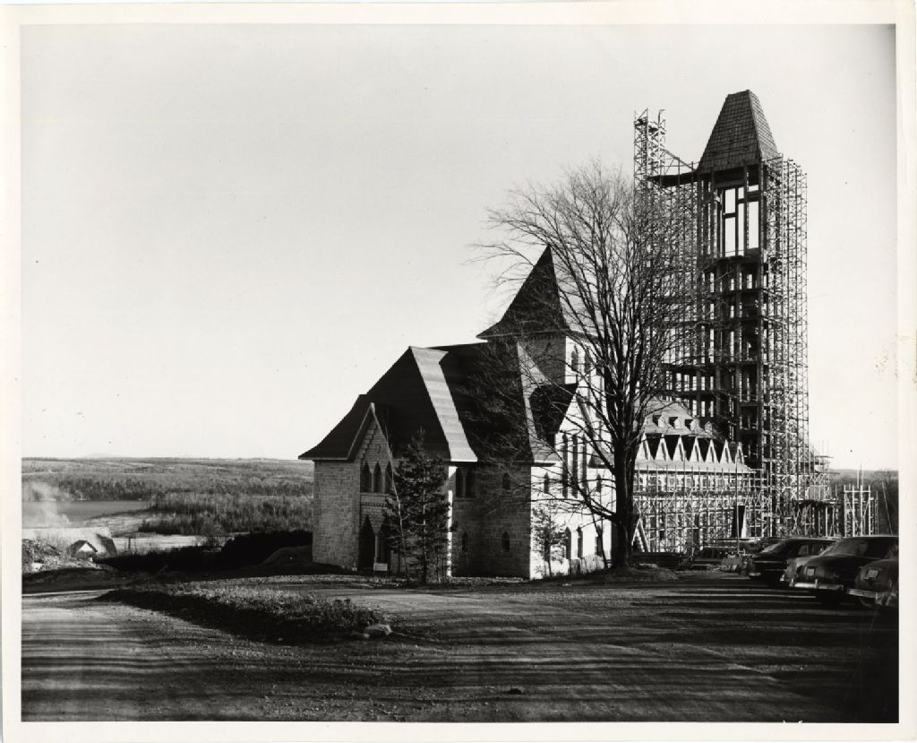 Chantier de construction du Monastère bénédictin, [Vers 1940], Archives nationales à Québec, Fonds L'Action catholique, (03Q,P428,S3,SS1,D13,P27), Photographe non identifié.