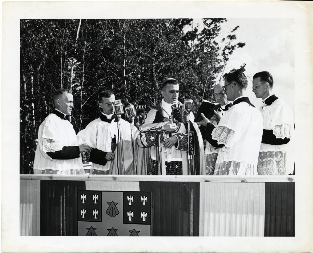 Mgr Maurice Roy lors de la bénédiction solonnelle de la cité universitaire de Sainte-Foy, septembre 1946, Archives nationales à Québec, Fonds L'Action catholique, (03Q,P428,S3,SS1,D16,P100), [Roger Bédard].