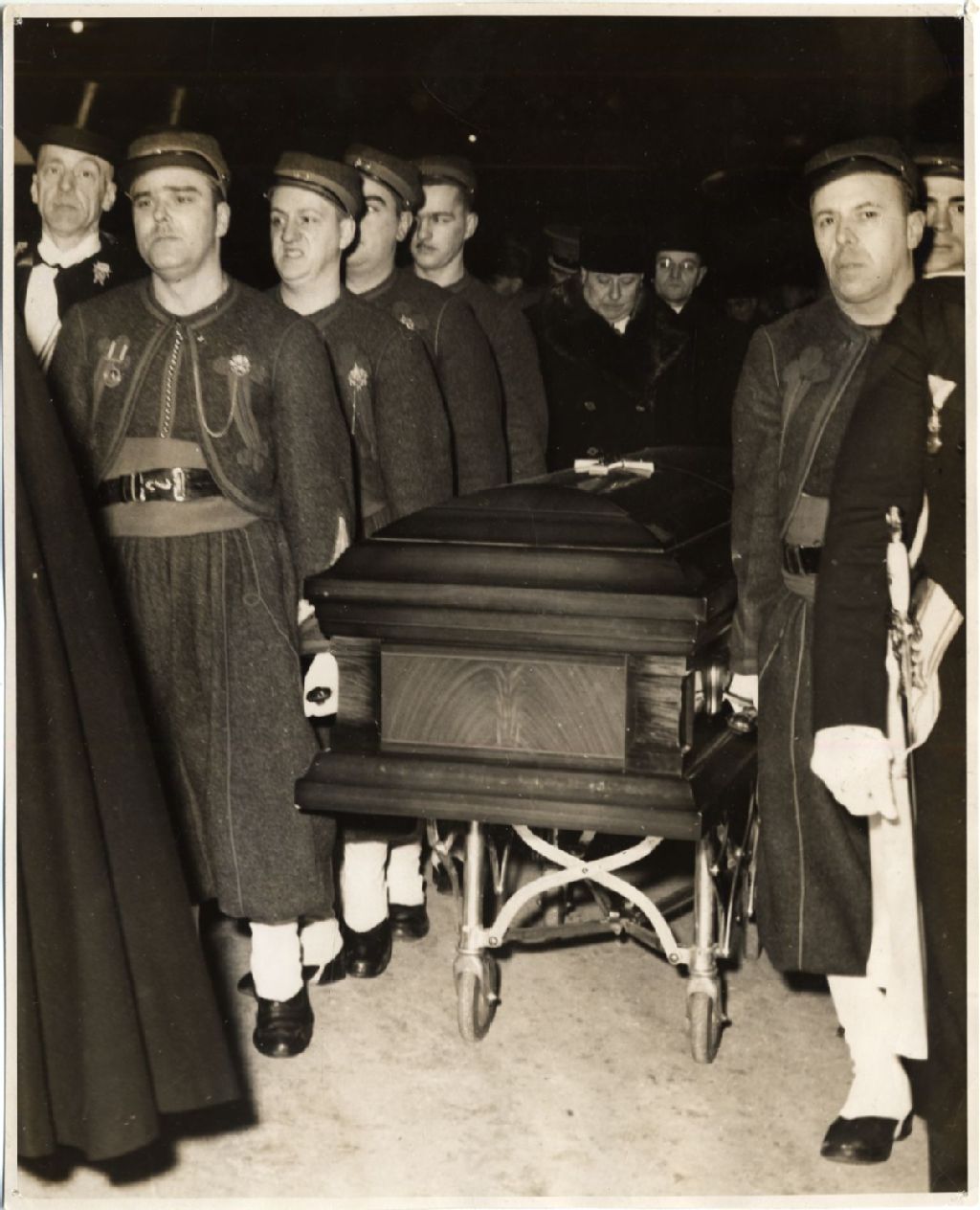 Arrivée de la tombe du cardinal Jean-Marie-Rodrigue Villeneuve, janvier 1947, Archives nationales à Québec, Fonds L'Action catholique, (03Q,P428,S3,SS1,D16,P59), [Roger Bédard].