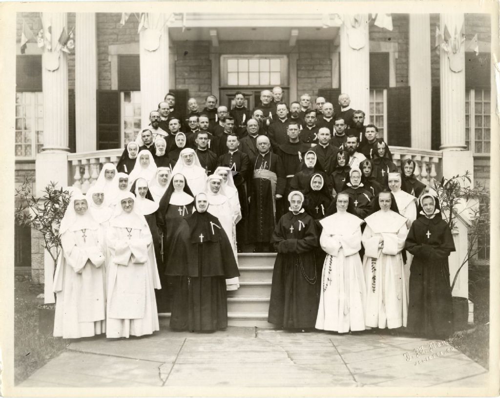 Groupe des exposants et exposantes de l'exposition missionnaire au Séminaire de Joliette, juillet 1927, Archives nationales à Québec, Fonds L'Action catholique, (03Q,P428,S3,SS1,D17,P5), J. W. Demers.