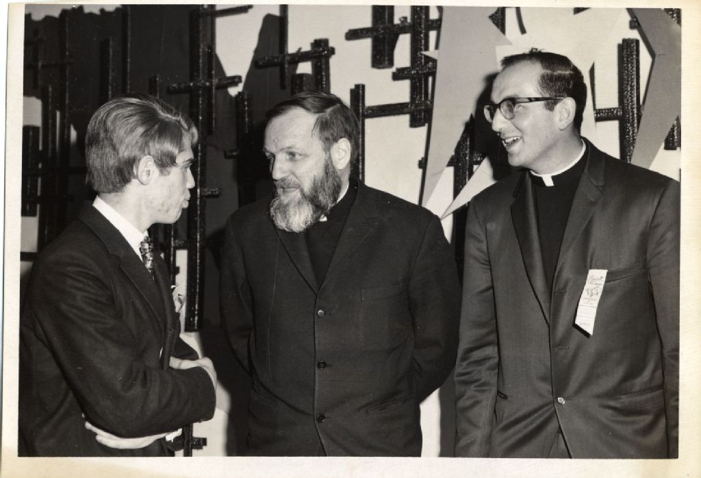 Louis-Marie Lavoie, Père Ambroise Lafortune et Père François Thibodeau, mars 1967, Archives nationales à Québec, Fonds L'Action catholique, (03Q,P428,S3,SS1,D17,P60), Marcel Laforce / Photo l'Action.