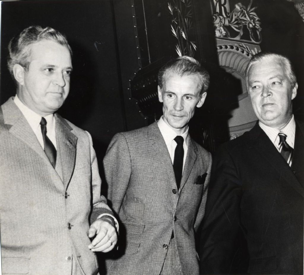 Jean-Jacques Bertrand, Jean-Noël Tremblay et Jean Lesage, [Vers 1965], Archives nationales à Québec, Fonds L'Action catholique, (03Q,P428,S3,SS1,D21,P35), Photographe non identifié.