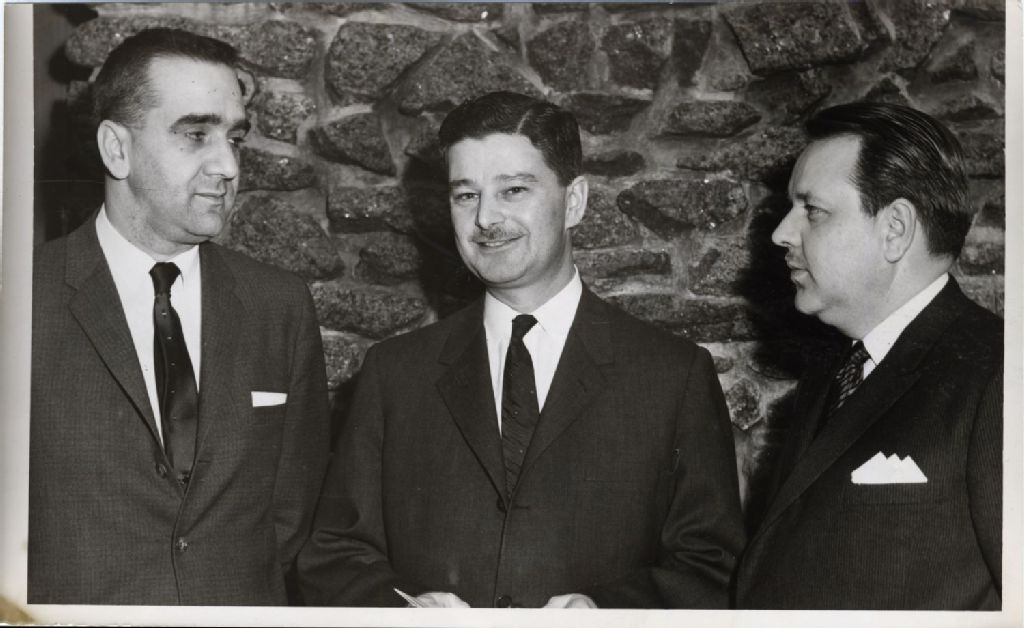 Paul Gérin-Lajoie et Yves Michaud, [Vers 1965], Archives nationales à Québec, Fonds L'Action catholique, (03Q,P428,S3,SS1,D21,P57), Photographe non identifié.