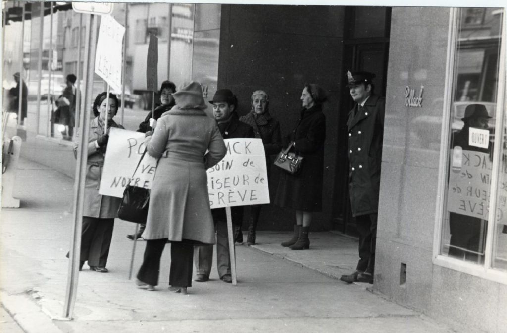 Manifestants devant le magasin Pollack sur le boulevard Charest dans le quartier Saint-Roch, [Vers 1965], Archives nationales à Québec, Fonds L'Action catholique, (03Q,P428,S3,SS1,D26,P14), Jacques Du Fresne.