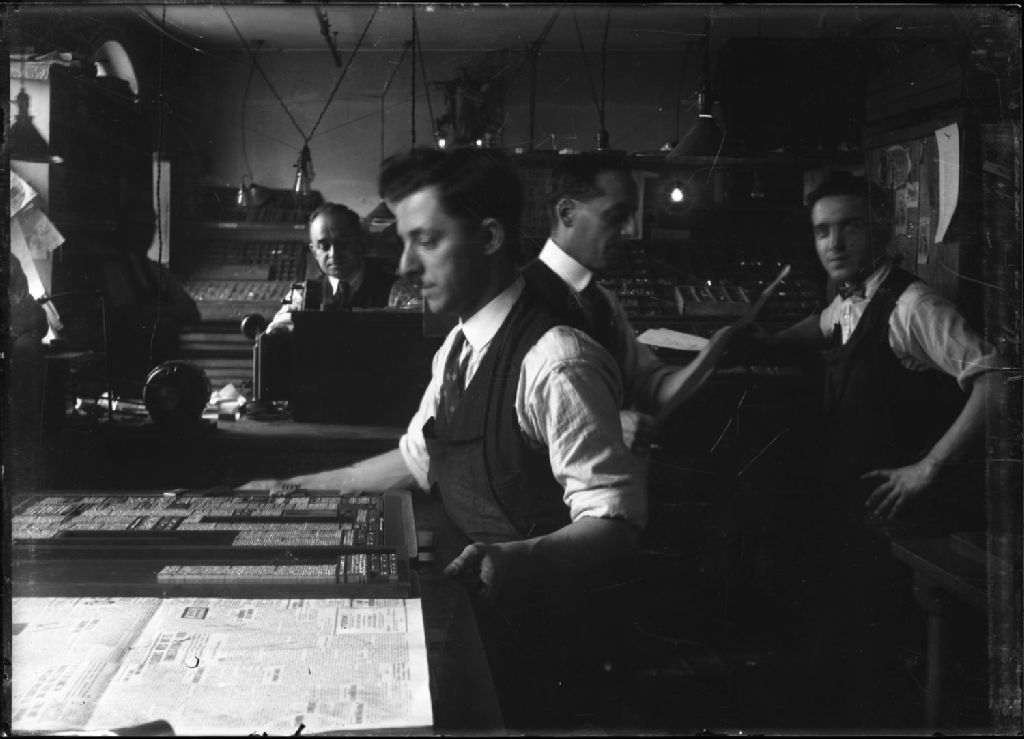Atelier du journal de "l'Action Catholique", [Vers 1925], Archives nationales à Québec, Fonds L'Action catholique, (03Q,P428,S3,SS1,D2,P43), Photographe non identifié.