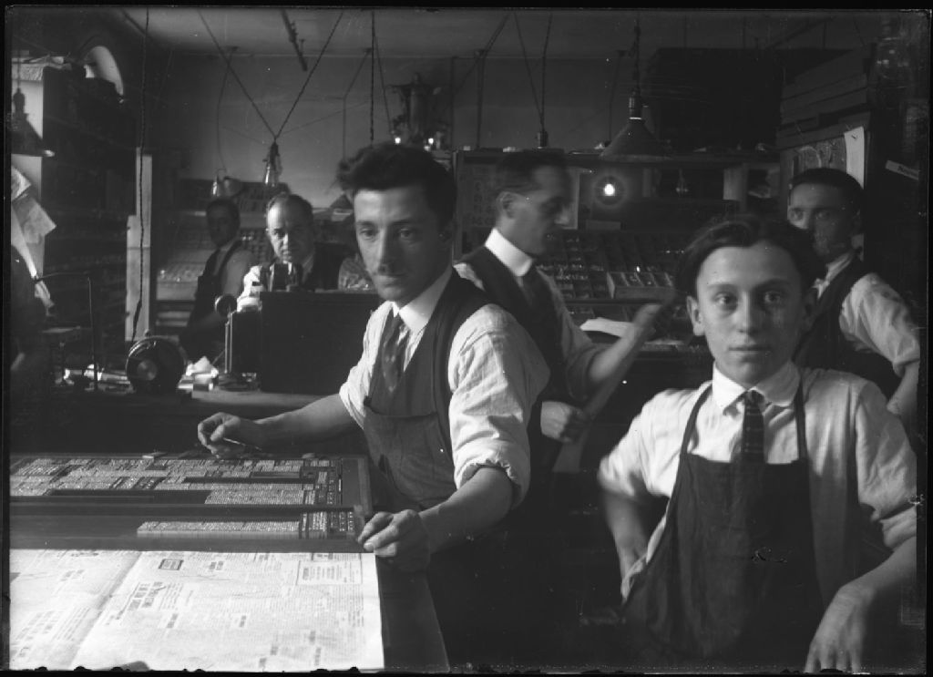 Atelier du journal de "l'Action Catholique", [Vers 1925], Archives nationales à Québec, Fonds L'Action catholique, (03Q,P428,S3,SS1,D2,P44), Photographe non identifié.
