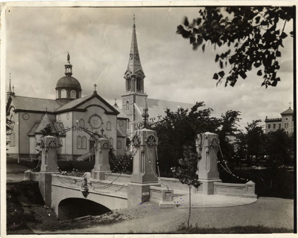 Pont des Chapelets du sanctuaire Notre-Dame-du-Cap au Cap-de-la-Madeleine, [Vers 1930], Archives nationales à Québec, Fonds L'Action catholique, (03Q,P428,S3,SS1,D35,P4), J.-A. Beauchemin.