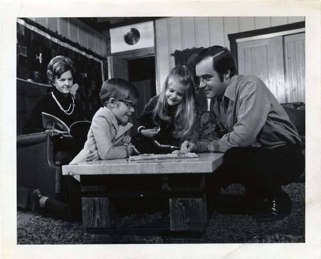 Marcel Masse, Cécile Martin et leurs deux enfants, [Vers 1970], Archives nationales à Québec, Fonds L'Action catholique, (03Q,P428,S3,SS1,D44,P532), Photographe non identifié.
