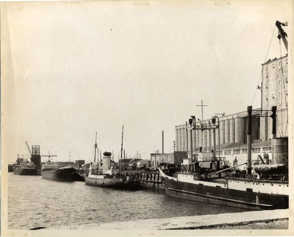 Brise-glace "Saurel" au bassin Louise, [Vers1965], Archives nationales à Québec, Fonds L'Action catholique, (03Q,P428,S3,SS1,D7,P127), Photographe non identifié.