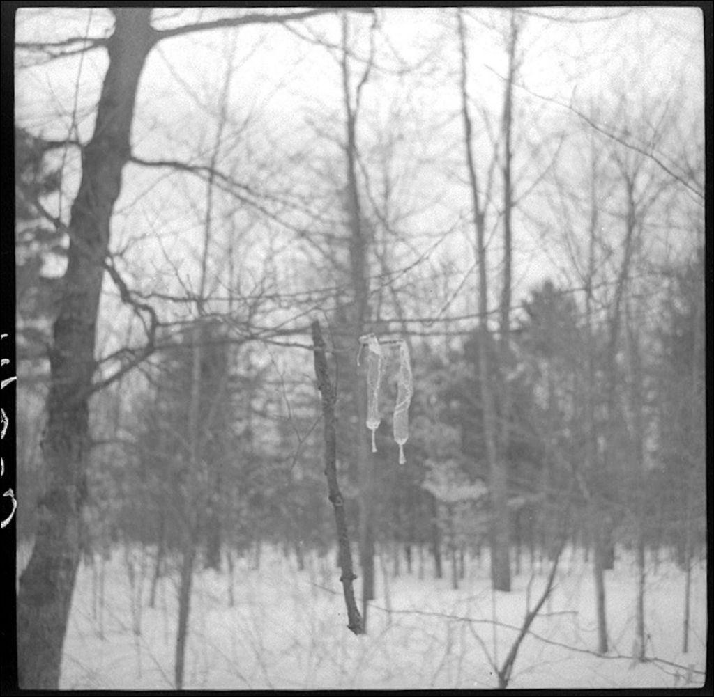 Sacs cellophane recevant l'eau d'érable (expérience) à Berthierville, 1943, Archives nationales à Québec, Fonds Ministère de la Culture et des Communications, (03Q,E6,S7,SS1,D2,P11303), Tancrède Deslauriers.