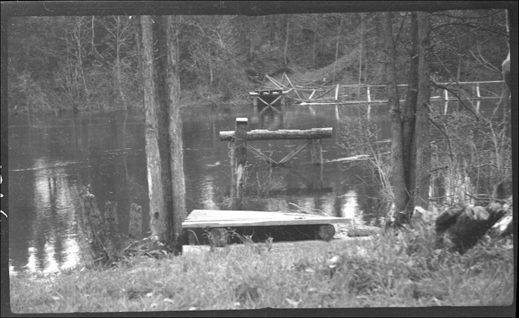 Passerelle sur la rivière Maskinongé à Saint-Didace, 1943, Archives nationales à Québec, Fonds Ministère de la Culture et des Communications, (03Q,E6,S7,SS1,D2,P11751), Irénée Beaudet.